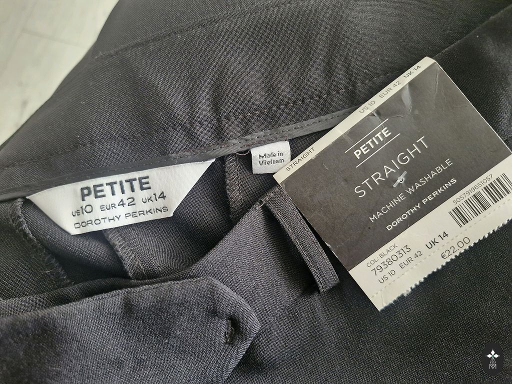 Svārki:garums 61cm, viduklis 38x2cm, gurni 48x2cm, padodas līdz 53x2cm. 2 kabatas priekšā šķēlums 20cm. Aizdare slēdzis uz sāna