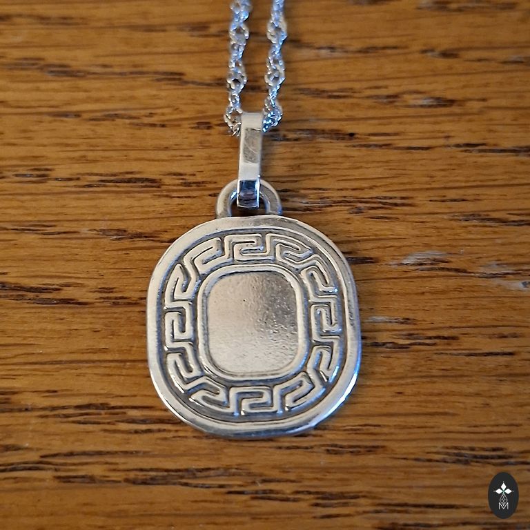 Mažai naudota sidabrinė grandinėlė ir naujas pakabukas.