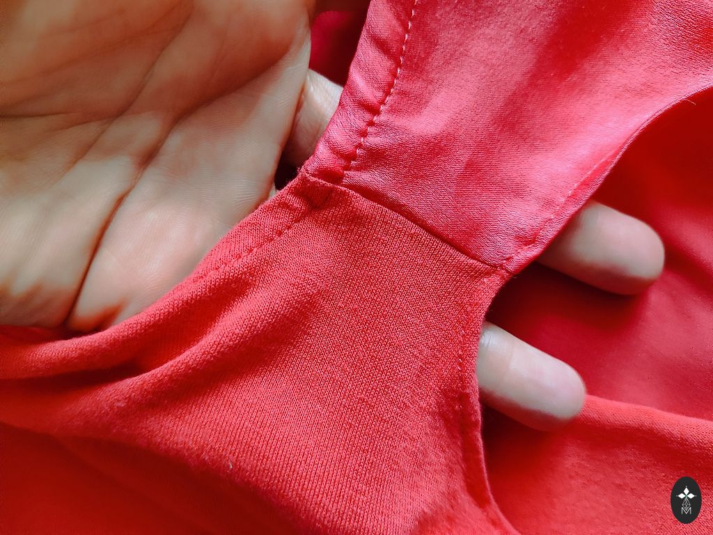 48% kokvilna, 48% modāls, 4% elastāns. Garums 117cm, platums viduklī 45cm (bet kleita stiepjas pēc vajadzības). Uzvilkta 2x.