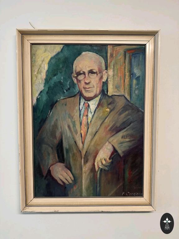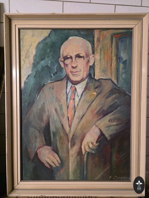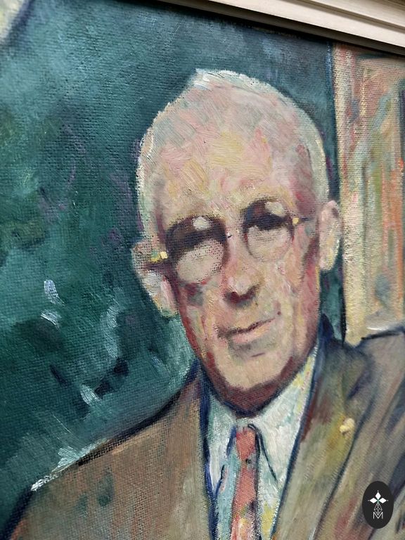 krāsainu ziedu klusās dabas kompozīciju. Darbs datēts ar 1946. gadu, kas piešķir tam īpašu vintage šarmu un vēsturisku noskaņu.