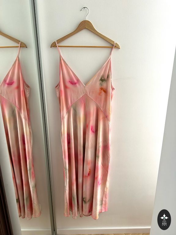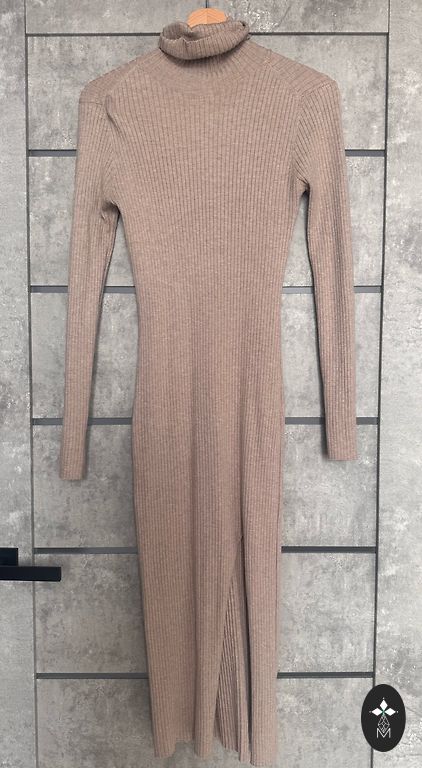 Maža vilkta suknelė. Rankovių ilgis sutrumpintas nuo originalaus modelio. Suknelės dydis nurodytas kaip 42.