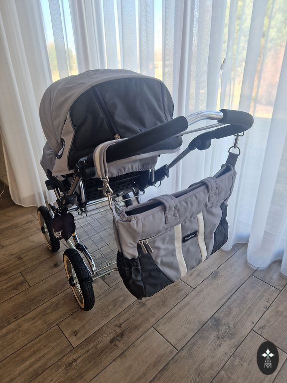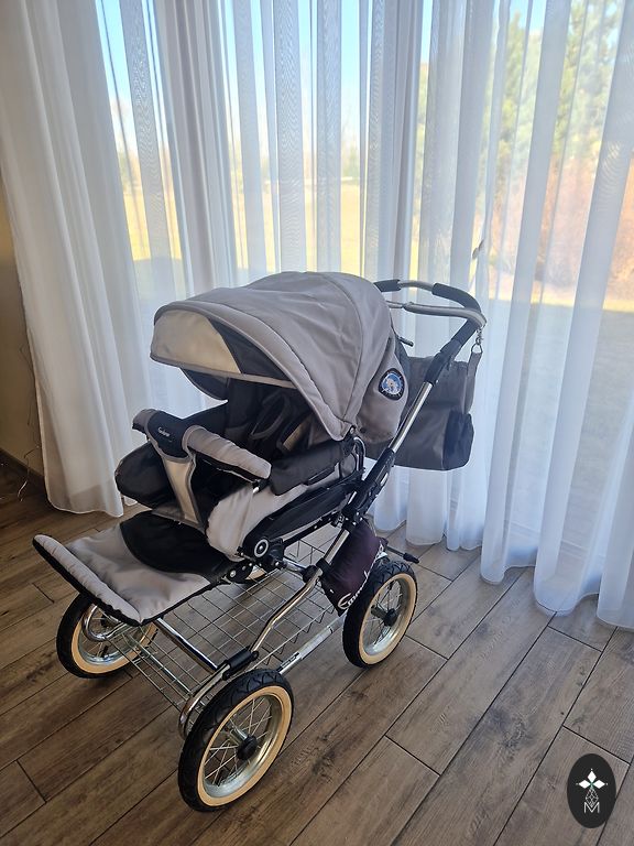 Emmaljunga NXT90 stroller. The carrycot is dark gray, the seat part is dark blue, the fabric parts of the stroller can be removed and washed, it will navigate all roads. Included are a foot cover for the seat part, a mosquito net, and a canopy for UV protection. If you have any questions or want to see more photos, feel free to write! We are located in Ventspils, but occasionally travel to Riga, so we can arrange something! I definitely recommend and have never regretted purchasing this stroller. With this stroller, you will navigate all roads!