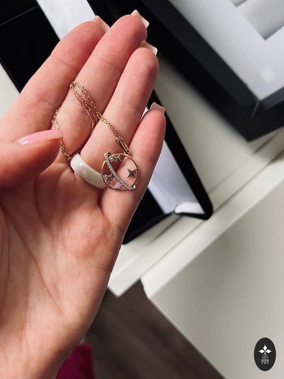 Golden necklace with diamonds.