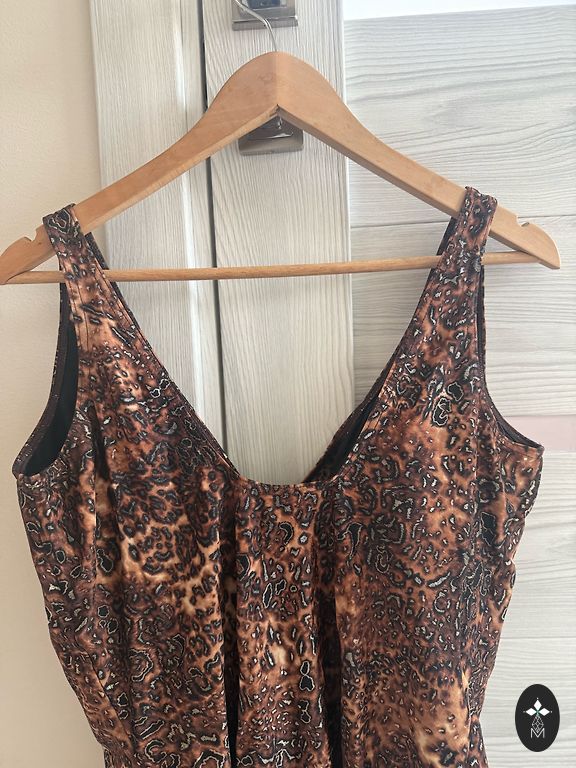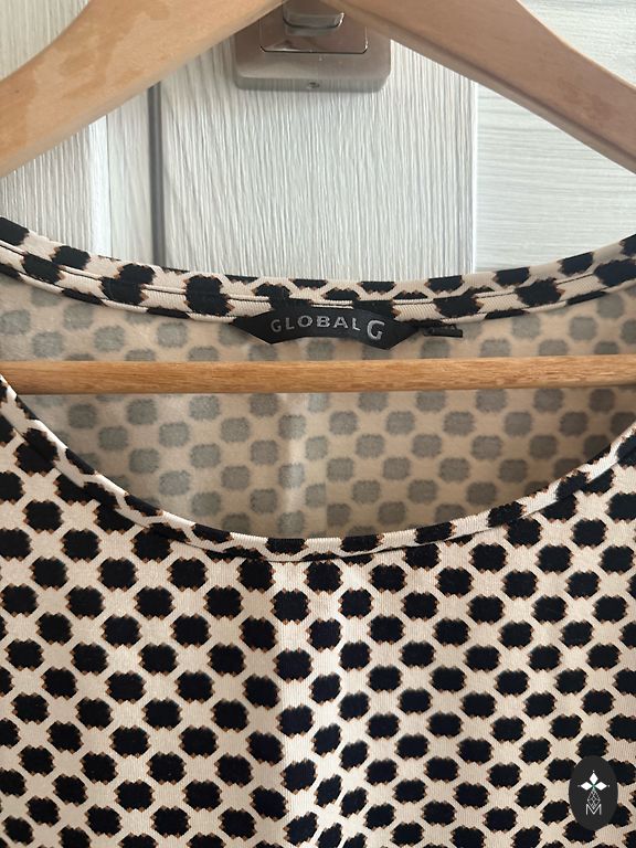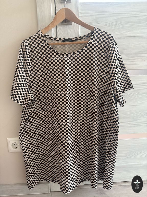 Very pleasant fabric, condition like new. Size tag cut off, bust 68 cm, length from shoulder 72 cm max.