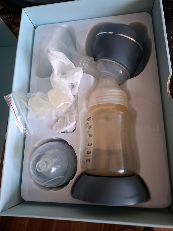Komplekte yra viskas, kas matyti nuotraukoje. 24 dydžio krūties apimtis. Papildomai galiu pridėti 2 vnt. Philips Avent buteliukus, kurie tiks krūties antgaliams.