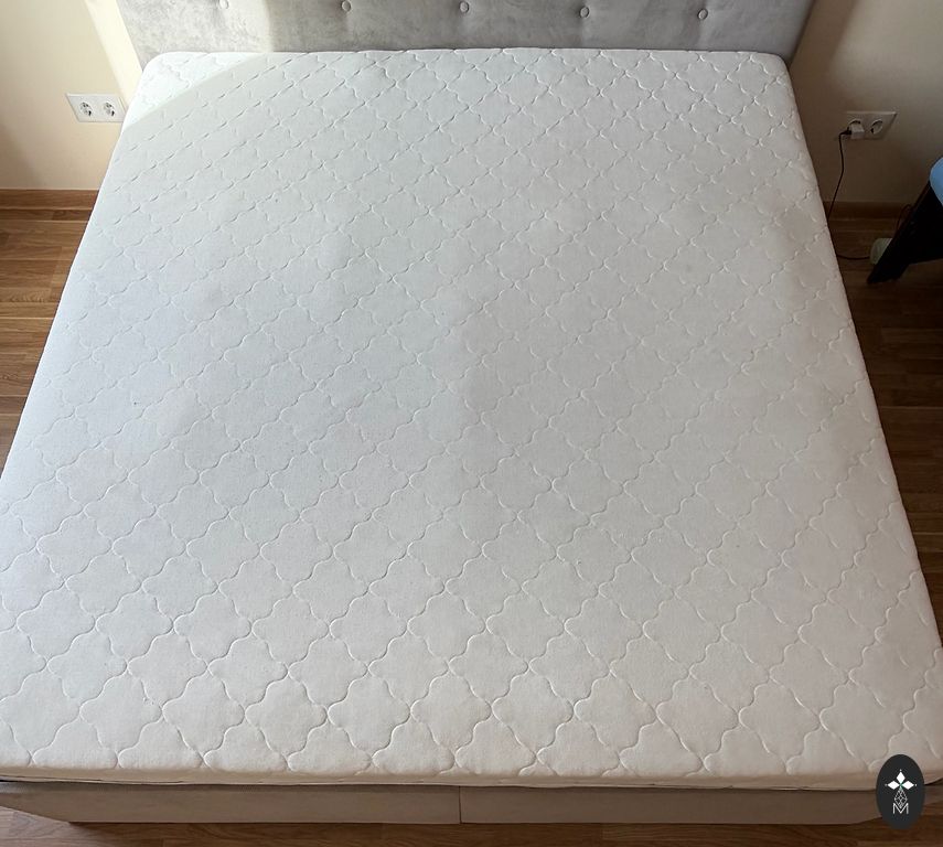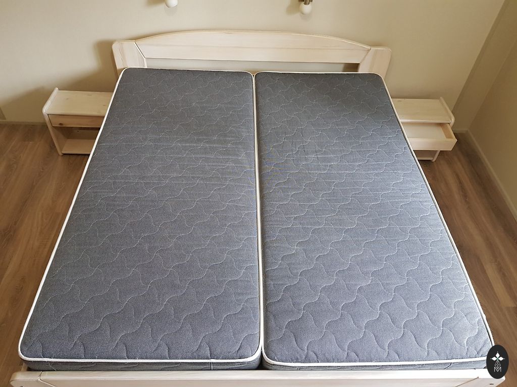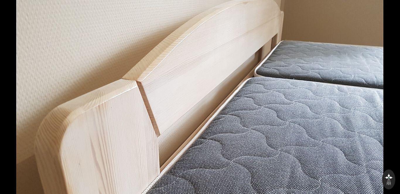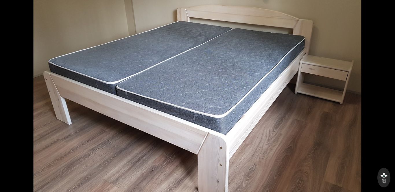 В связи с переездом продаем очень качественную кровать размером 160x200 см, изготовленную на заказ в Латвии. Каркас сделан из натурального дерева. В комплекте идут прикроватные тумбочки и лампы IKEA. Также в комплекте матрас с двумя сторонами разной жесткости. Более жесткую сторону мы вообще не использовали. На обивке есть несколько небольших царапин от кошки, но издалека они незаметны. Находимся в Золитуде.