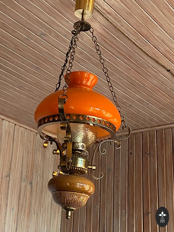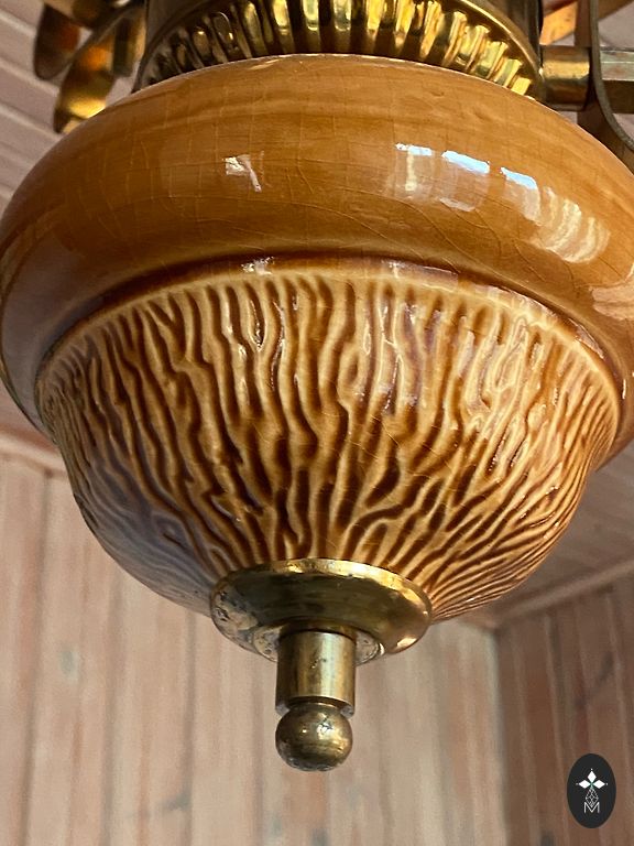 С незначительной потерей золота и небольшим сколом под крышкой. В остальном очень хорошая.