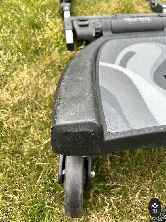 Hamax Siesta dviračio kėdutė su dviem tvirtinimais. Kairės kojos fiksatoriaus uždangalas nulūžęs (žr. nuotrauką). Kitais atžvilgiais viskas puikios būklės.