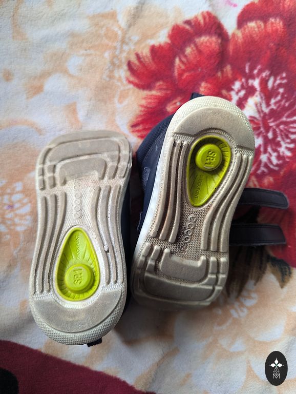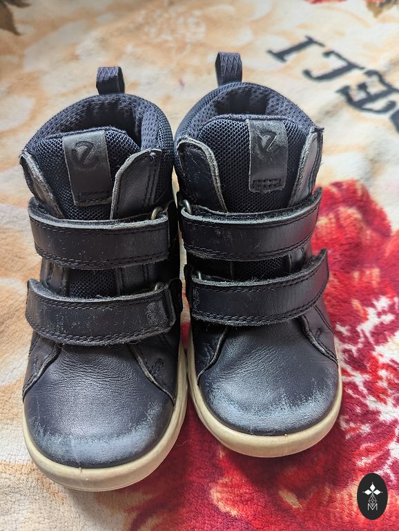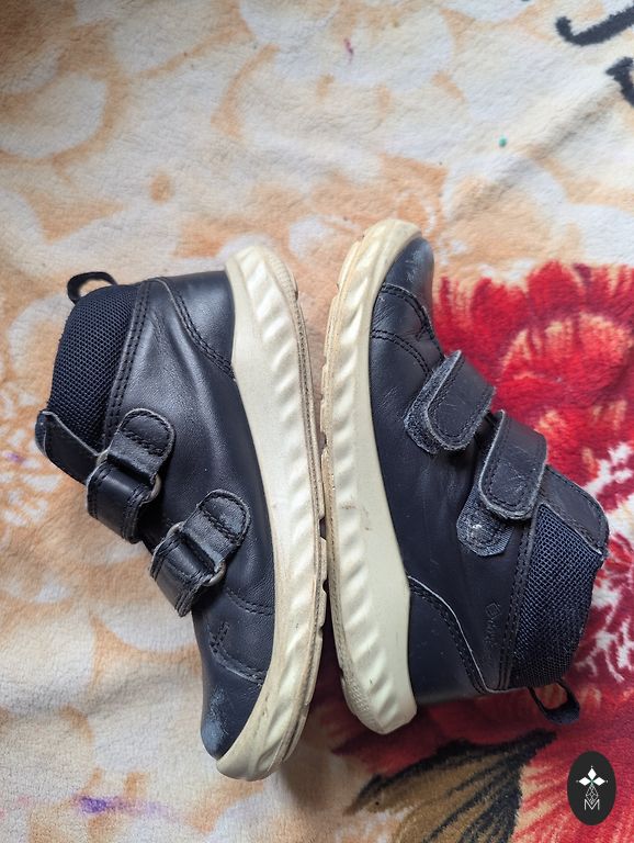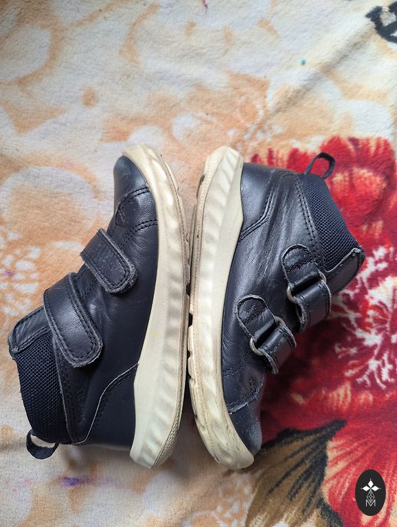 Natūralios odos batukai, vidpadis 15cm. Matomos dėvėjimo požymiai (ypač balta padas nebėra balta), tačiau lipdukai veikia labai gerai. Ecco kokybė, dėžutė taip pat prieinama.