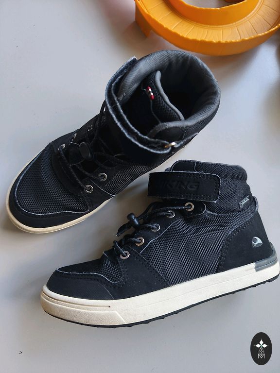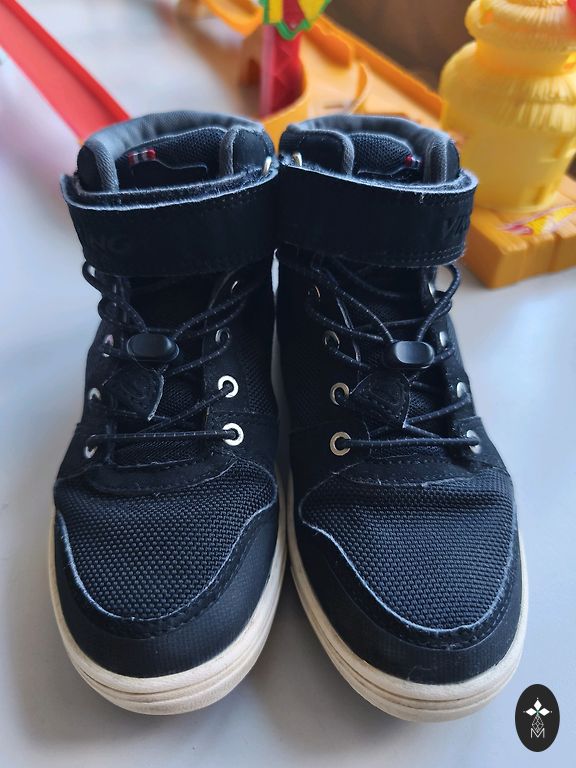 Batai yra geros būklės, tik šiek tiek įbrėžtas priekyje. Buvo nešiojami sportui ir naudojami darželyje. Labai minkšti ir maksimaliai patogūs, tinkantys tiek siaurai, tiek plačiai pėdai. Kvėpuojanti medžiaga, todėl koja juose neprakaituoja. Padas gerai amortizuoja, todėl puikiai tinka aktyviems vaikams ir sportinei veiklai.