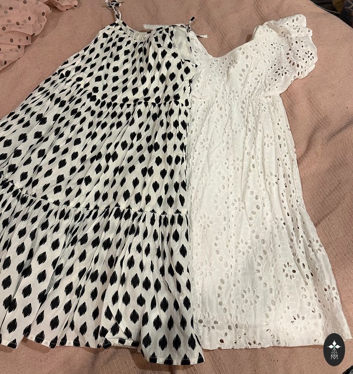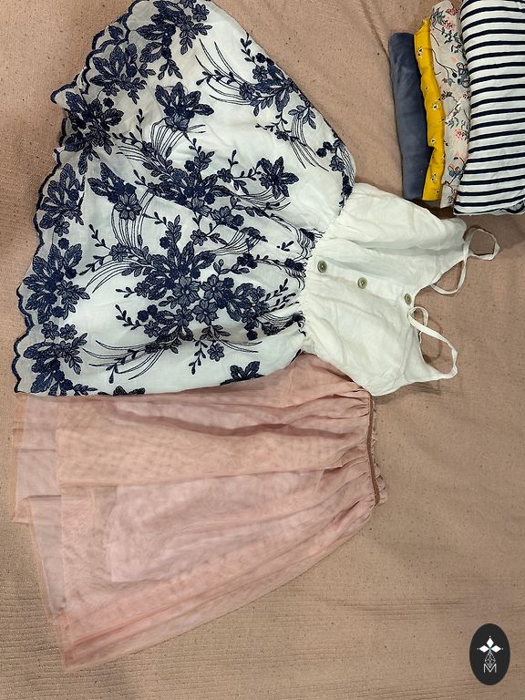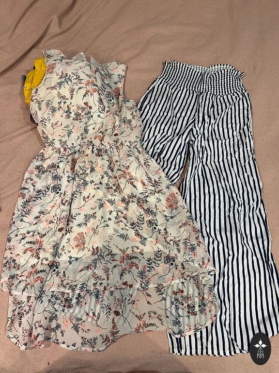 Derēs 10-11 gadīgai dāmai. Mētelītis, zaļā kleita un melnais sarafāns no Zaras, bikses un ādigā veste-H&M, baltā kleitiņa ar mirdzošām pogām River Island. Kleitiņai ir pleķītis uz pleca, kuru noteikti var izmazgāt! Kopumā drēbītes labā stāvoklī. Pārdodu visu kopā.