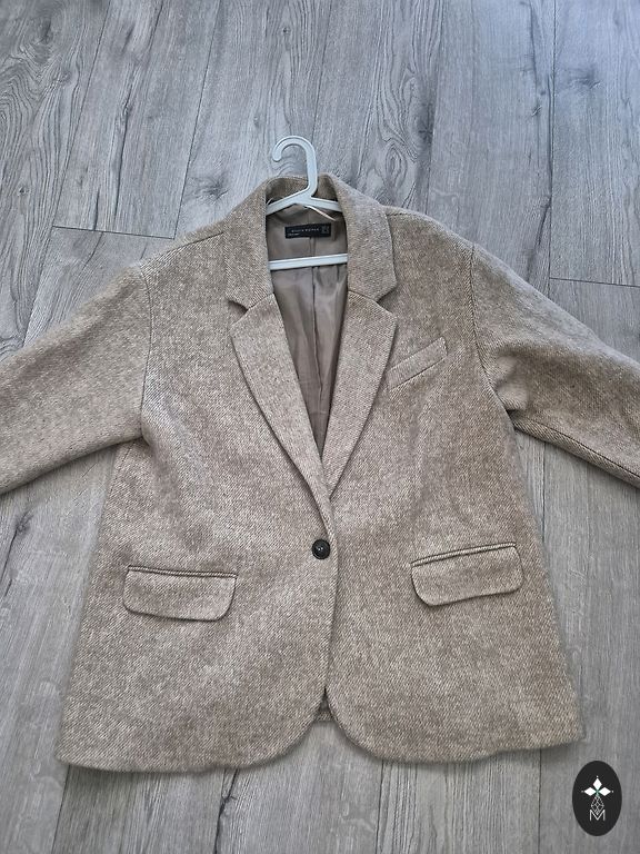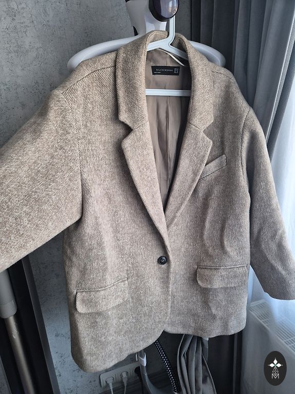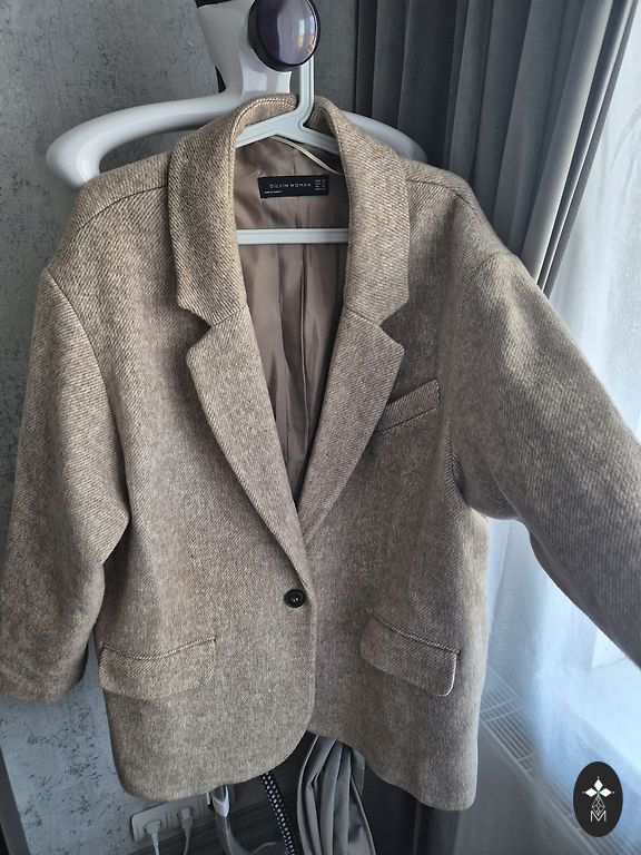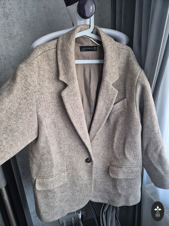 Naujas elegantiškas švarkas su mažais peties pagalvėlėmis, gerai išlaiko siluetą