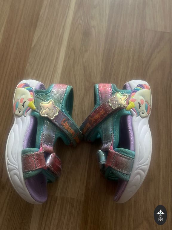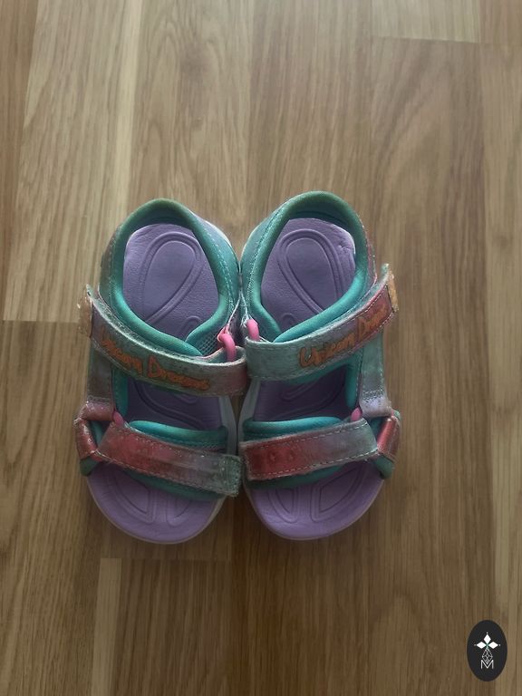 Labai, labai minimaliai darželyje naudoti batukai. Kaip nauji. Šie patogūs pačiai mergaitei apsiauti, lengvi ir šaunūs. Taip pat atrodo gerai. Su tokiais pačiais prabėgo visą praėjusią vasarą. Bet šie skubiai buvo skirti darželiui, kažkuriame tarpinio dydžio etape šiek tiek vaikščiojo.