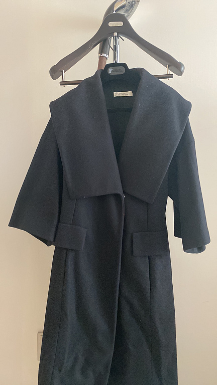 Soe mantel taskutega. On mitu nööpi. Pikkuste kohta küsida privaatselt.
