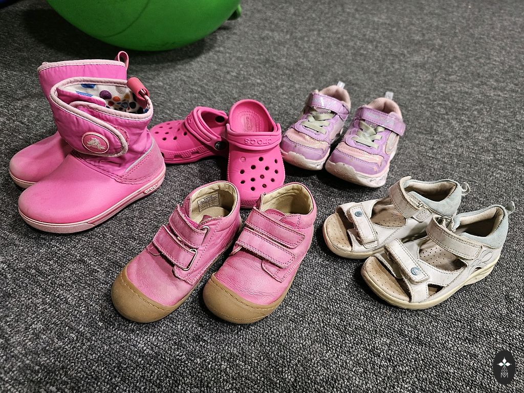 Vieglas ar klipšiem botas 25 izm. - 18 cm. Staigājot mirdz gaismiņas. Uz zoles ir lietošanas pleķīši uz baltajiem laukumiem.