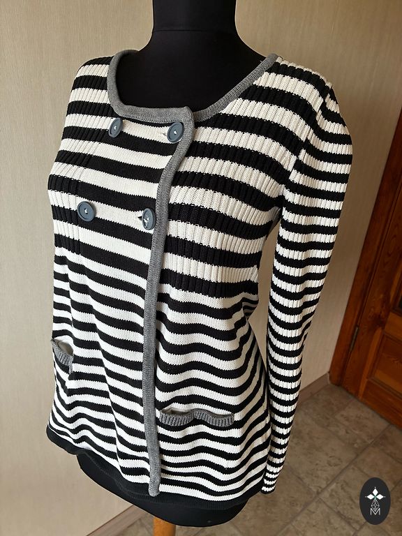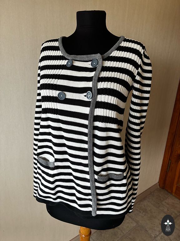 Length 58 cm, chest 110 cm, sleeve length 63 cm. Upon removing from the packaging, I noticed a small spot on the back (visible in the photo), it might be possible to clean it, but I haven't tried.