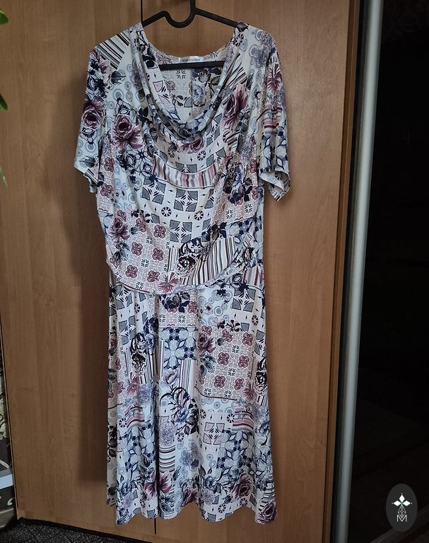 Viegla, vasaras kleita ar rozēm~46.izmērs. Krūtīs 56x2, gurnos 60x2, garums 96cm