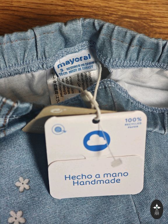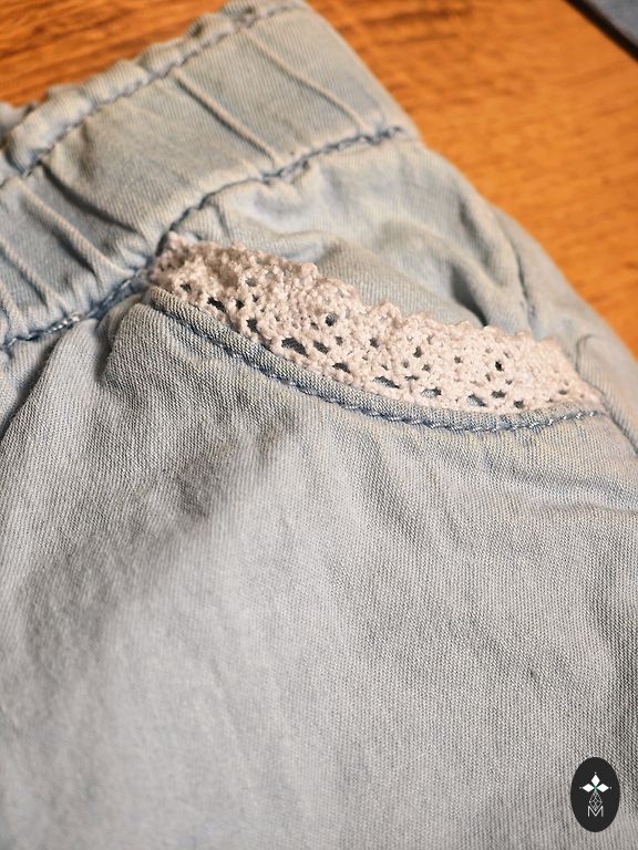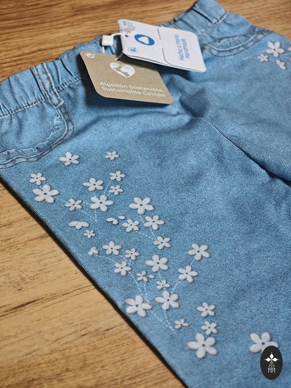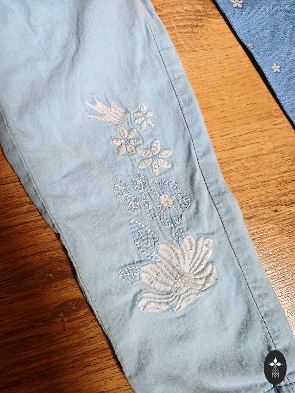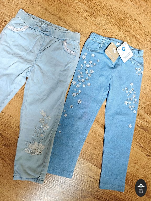 Džinsai su platesniais galais, nurodytas 122 dydis.