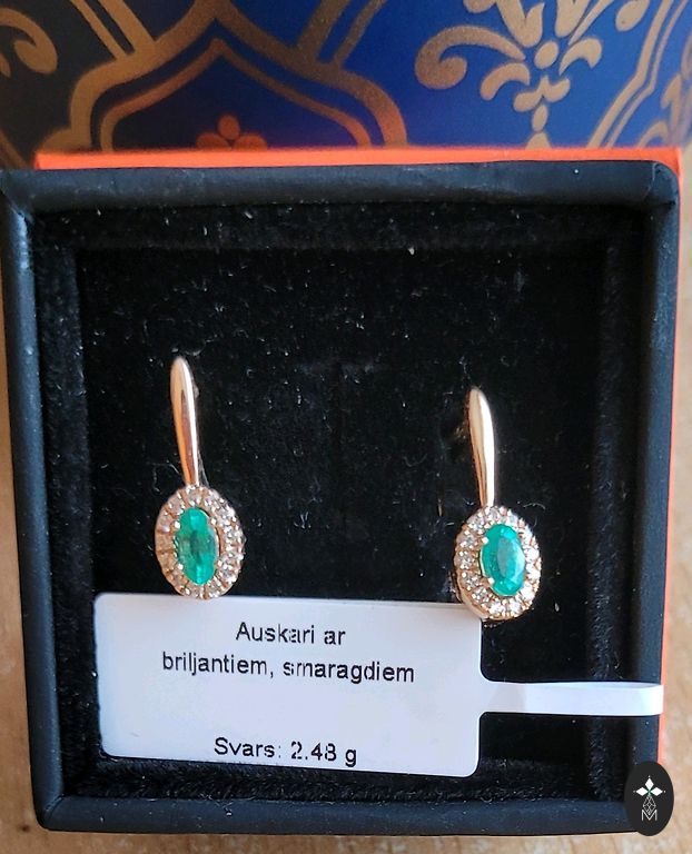 Auskari jaunie ar brilliantiem safiriem 2.89 gr 585⁰sark.brill 0.05ct safirs 1.04