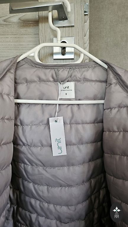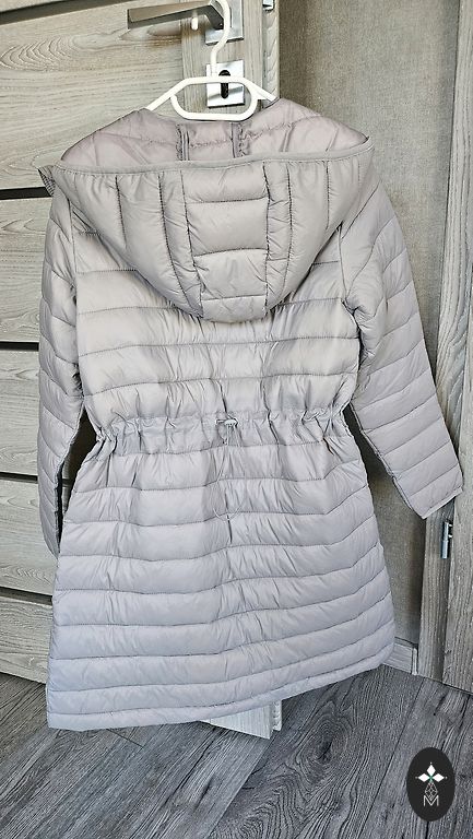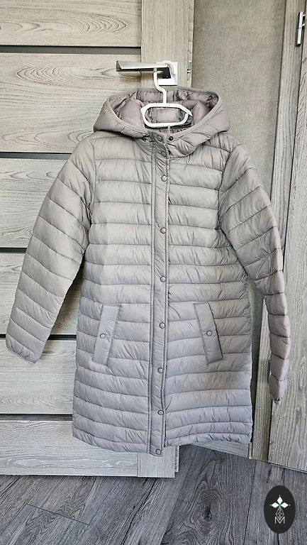 Smuka saisināta gaiši haki jaka ar nelielu siltinājumu un divām kabatām. Uz bildes var redzēt, kā izskātās uz jaunkundzes, kam augums ir 164 cm. Es teiktu, ka šī jaciņa būs labi no kādiem 158 cm.
