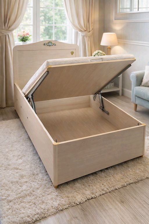 Bērnu izvelkama gulta ar matraci un uzglabāšanas vietu.