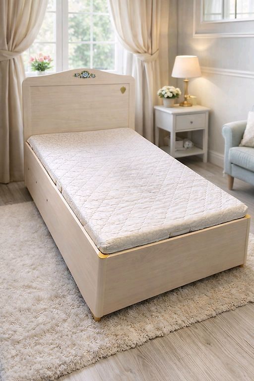 Bērnu izvelkama gulta ar matraci un uzglabāšanas vietu. Izturīga konstrukcija, gultas garums 1,30 m–2 m, platums 85 cm, augstums 45 cm, atzveltnes augstums 77 cm. Tīrā, ir lietošanas pazīmes. Pašizvešana Zolitūdē, Rīgā.