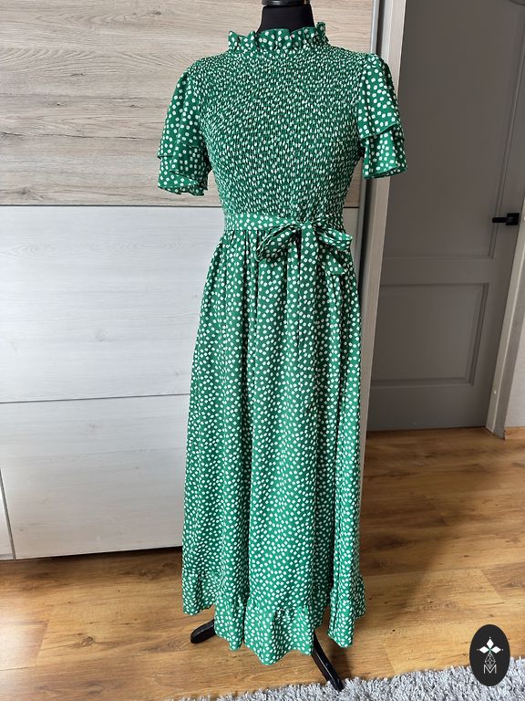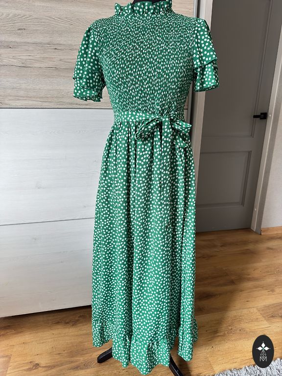 Грудь 94 см, бедра 100, длина 100 см, материал легкий, средней толщины, приятный.