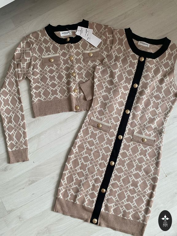 Audinys vizualiai primena liną, tačiau tai modernus poliesterio ir elastano mišinys — labai malonus kūnui, lengvas ir kvėpuojantis.