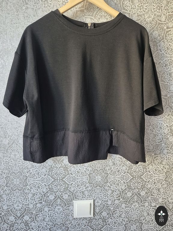 Vienu reizi uzmērīta maiciņa, prakstiski jauna. Norādīts 3XL, bet būs uz XL. Krūtis nestiepjot 100 cm, stiepjas līdz 120cm.