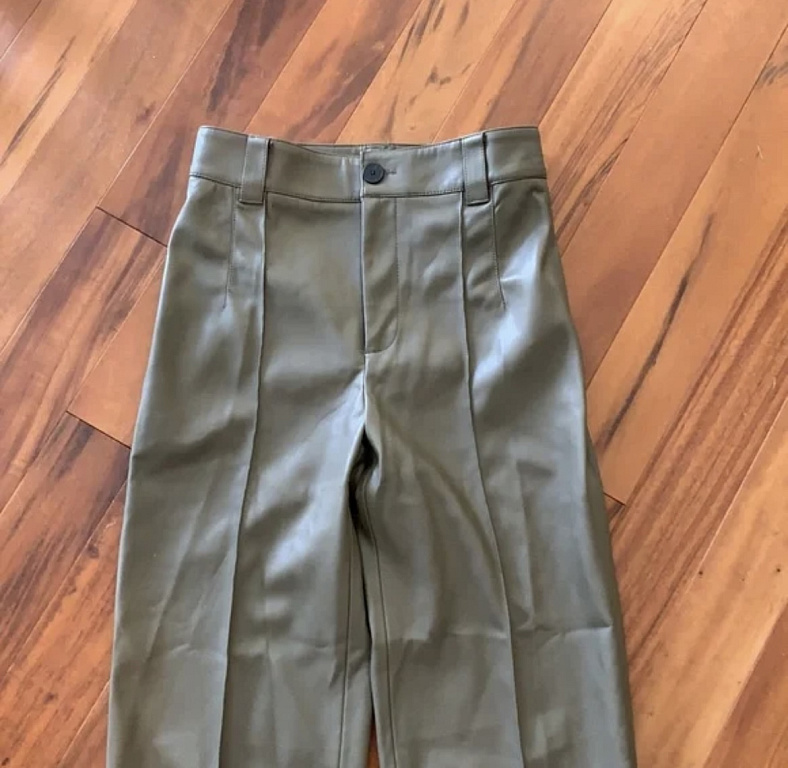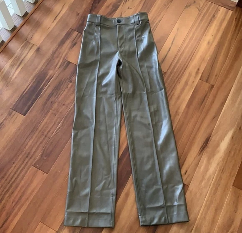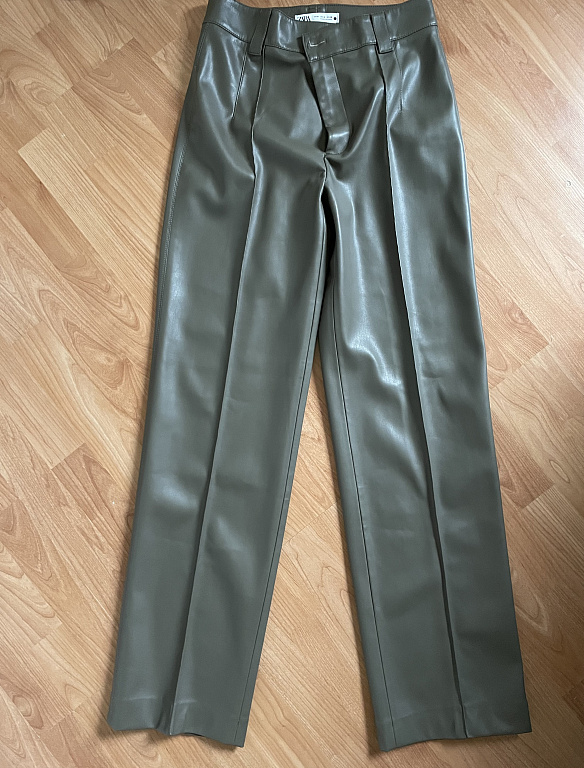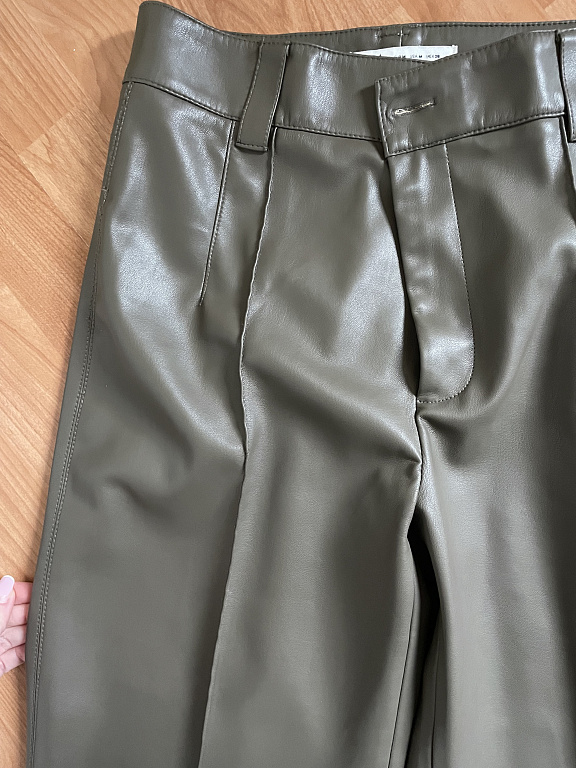 Nahast püksid kõrge vöökohaga, pildil veidi kortsus, kuid saab triikida.