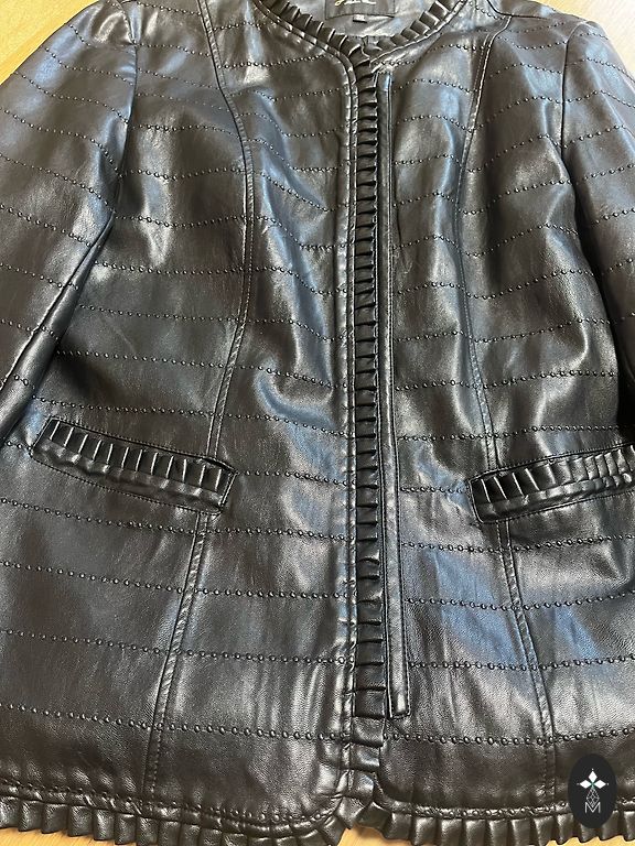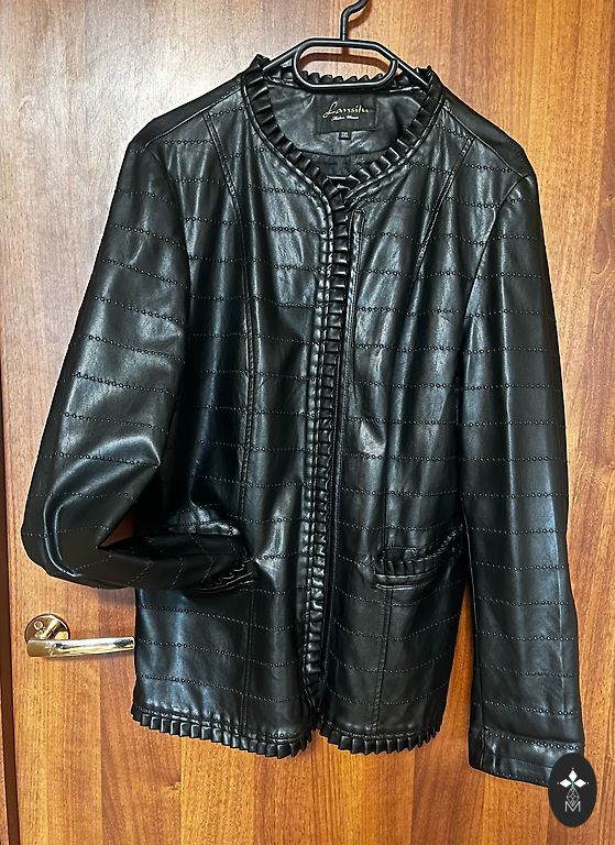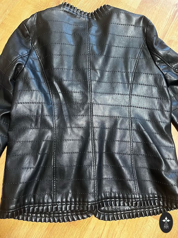 Parduodama nauja dirbtinės odos striukė. Nuo pažasties iki pažasties 57-58cm, ilgis 59cm, rankovė nuo peties 62cm, nugara 47cm. Nauja, be defektų.