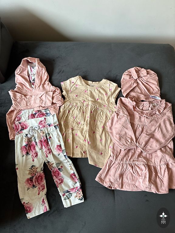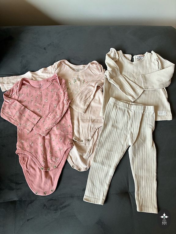 Dažādi zīmoli - Wufkids bodijs, Wooly organic zīda/merino vilnas bodijs, bikses un cepurīte. Lindex džemperis ar banti. Viss ir lietots, mazgāts vairākkārtīgi, bet defektu nav. Par čupiņu 11 EUR