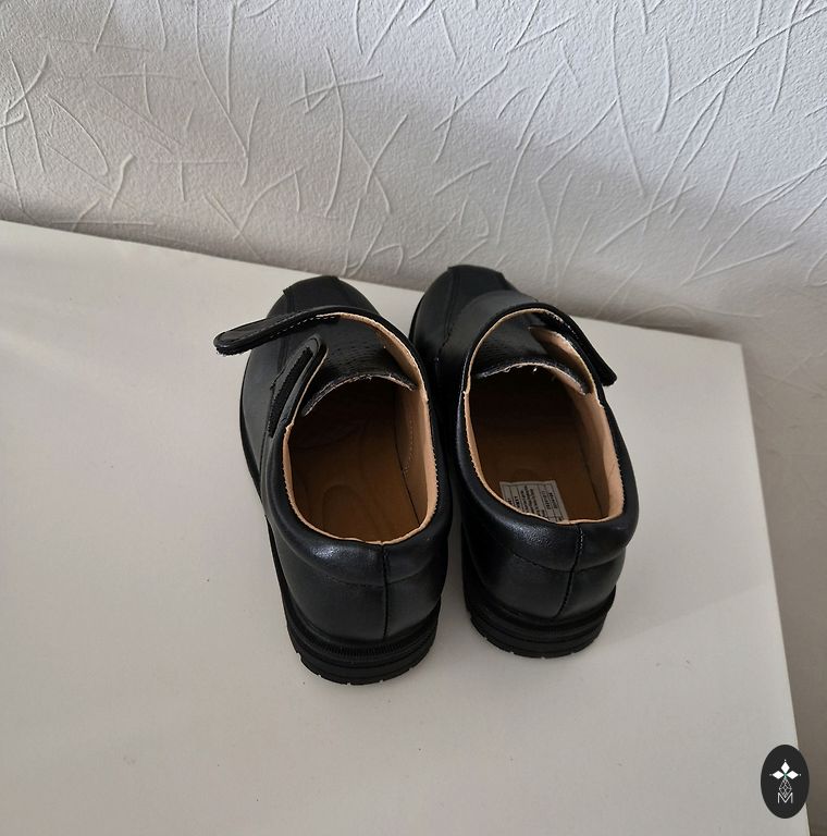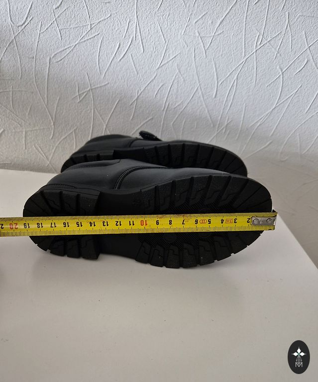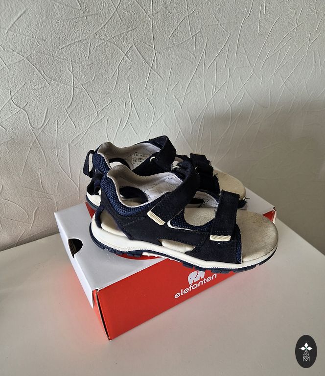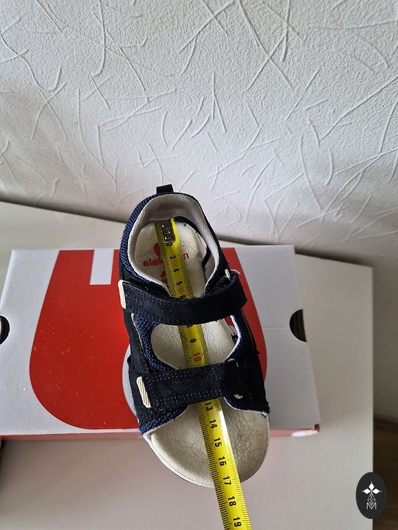 Uzvilktas tikai 2-3reizes,paraugām,derēs bērnam,kuram nav pārāk plata potītes vieta.Iekšpēdiņa 18cm.Kastes nav.