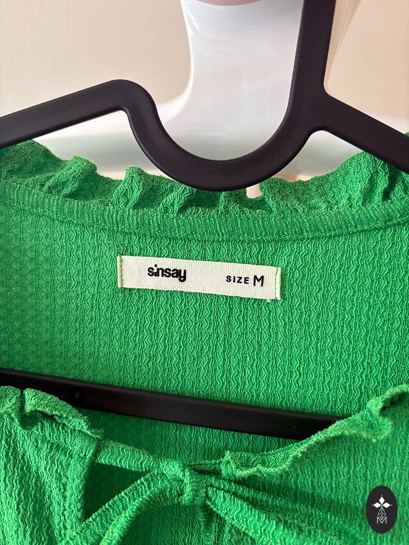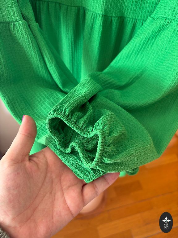 Indicated as XL, but I think it will fit M/L size. Bought here on Andele, only tried on, as the sleeves were too long 😌