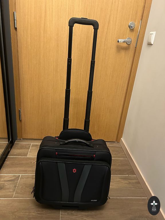Очень легкий (2,2 кг) и вместительный. Надежный замок и колеса на 360°. Могу отправить через Omniva.