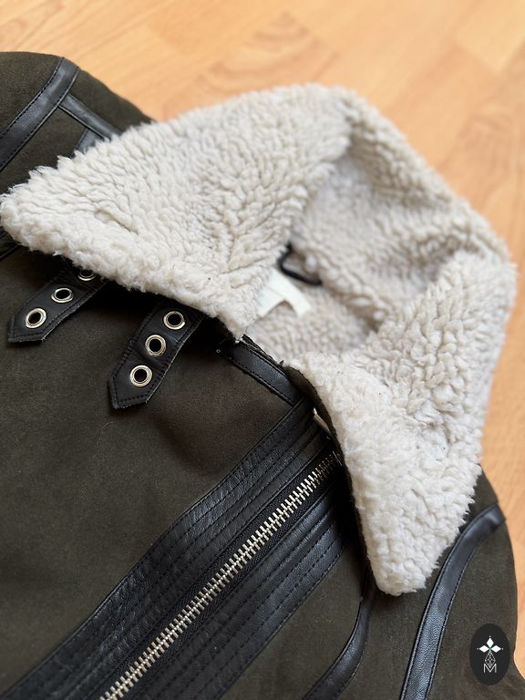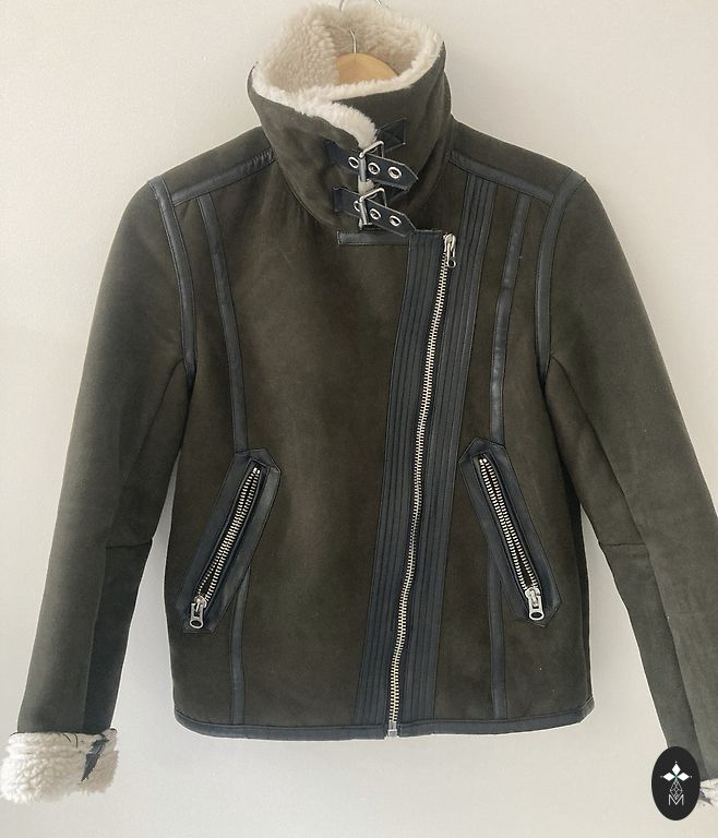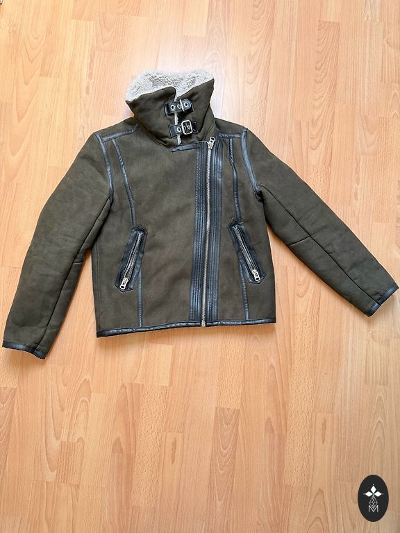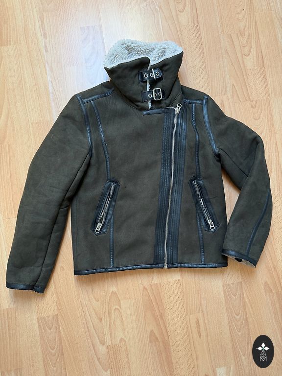 S izmēra, plānā virsjaka. Bez defektiem. Krāsa dzīvē skaistāka. Augšdaļa vairāk uz haki krāsu,kamera neuzķer īsto toni. Brīva uz augumu