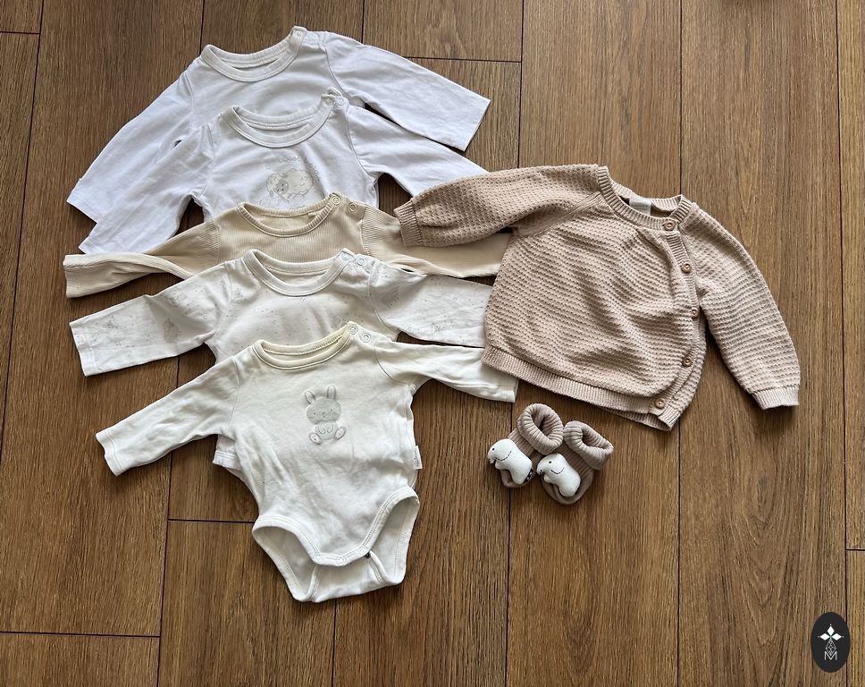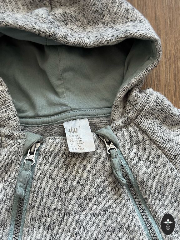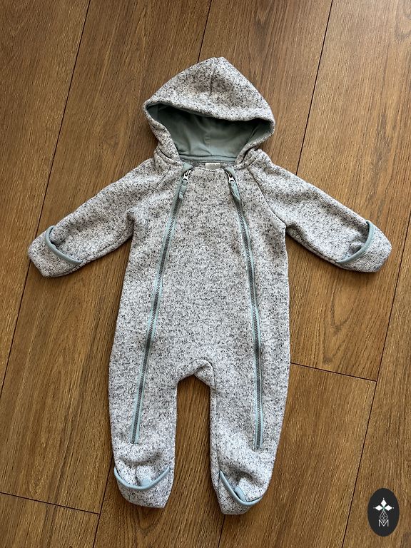 Uzvilkti pāris reizes. Norādīts 3-6 mēneši- 68 izm, bet der līdz 68 izmēram. Rokas aizlokāmas.