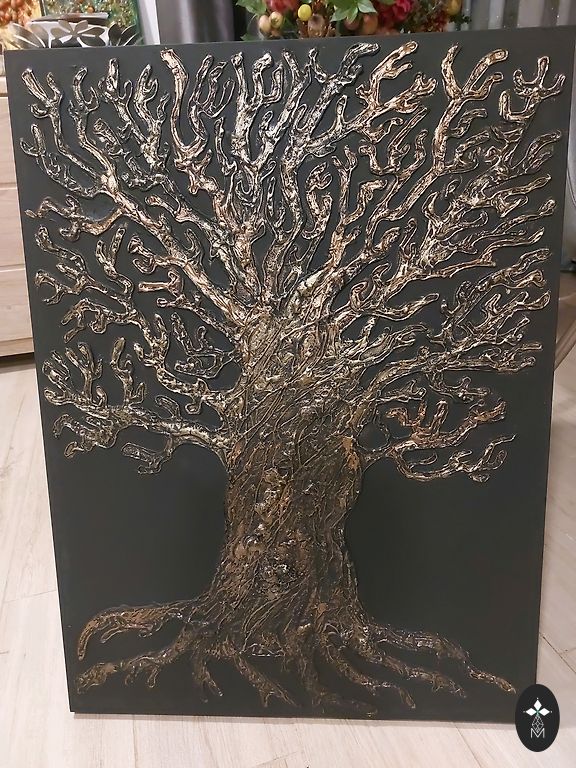 Jauktas tehnikas interjera darbs ar faktūru. 70×50 cm