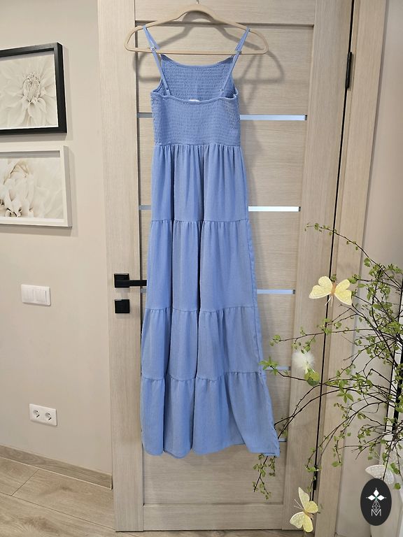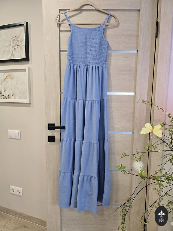 Garums ļoti labs.Kleita nav vilkta.Patīkams audums un aktuāls tonis