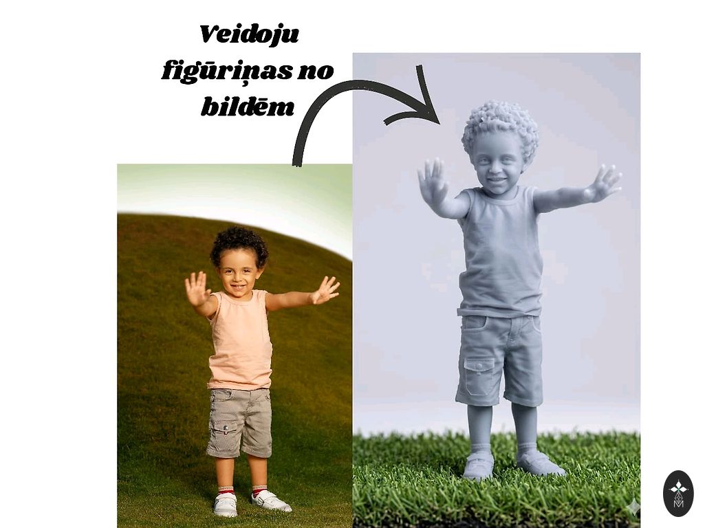 Siūlau sukurti personalizuotas figūrėles, kurios tiksliai atkartotų nuotraukoje matomą asmenį, pozą ir drabužius.