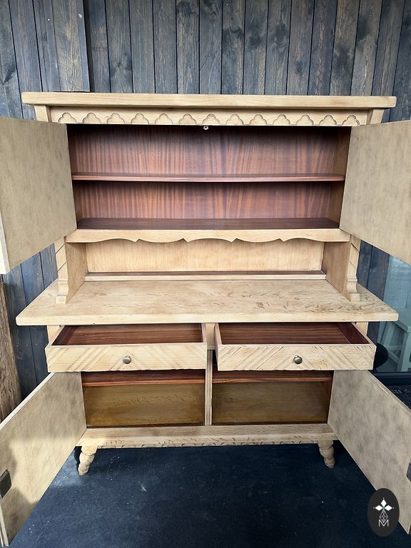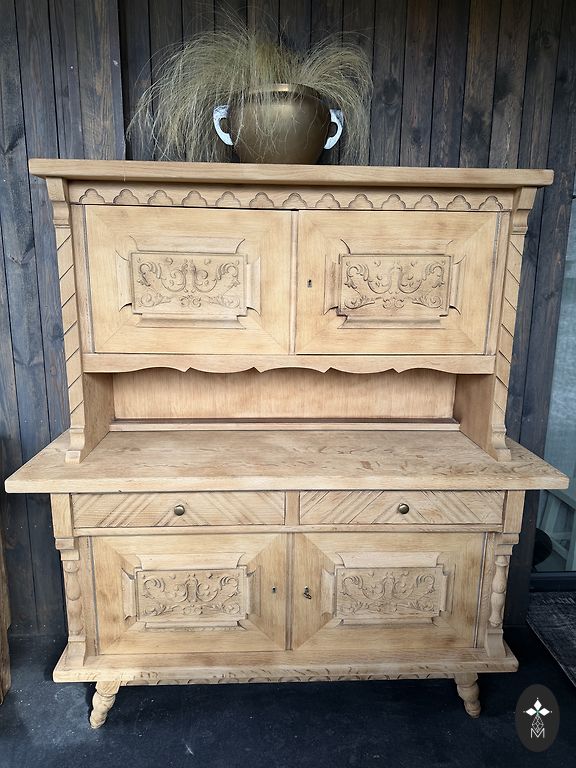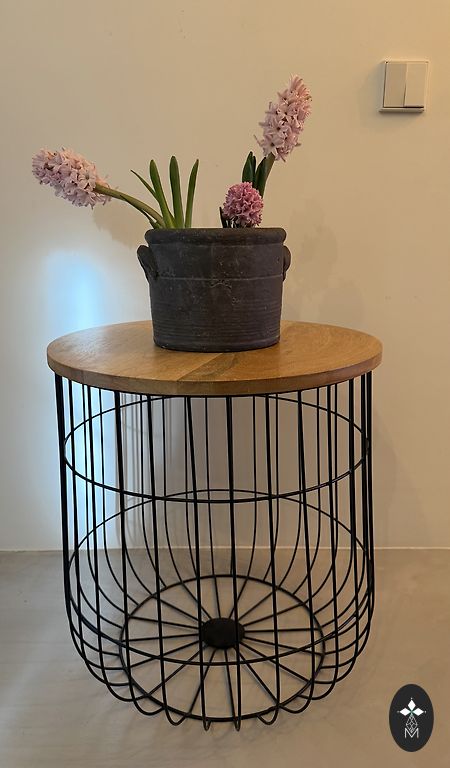 Pramoninio stiliaus mango medžio lentyna su metalinėmis kojomis, dviem stalčiais. Puikios būklės. Aukštis 91, plotis 100,5, gylis 40,5 cm.