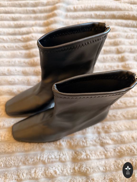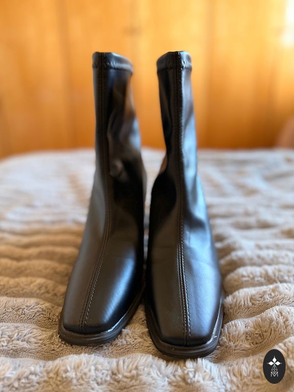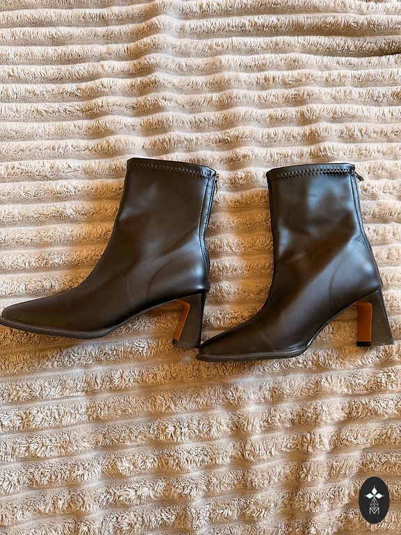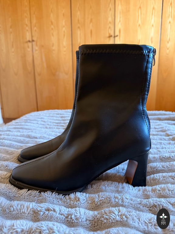 Black artificial leather ankle boots