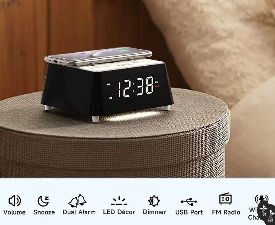 A new table clock with laser projection on the surface, date, alarm, indoor temperature, very practical and beautifully illuminates the surface where the projection time shines in the dark.
