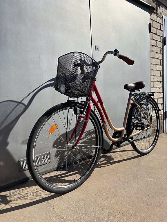 Riteņi 26’’, viegls rāmis, rr L-58, augumam 160-175, ātrumi 3x7, izturīgs bagāžnieks grozs +10e, metāla dubļusargi, kājiņa, atstarotāji, zvaniņš