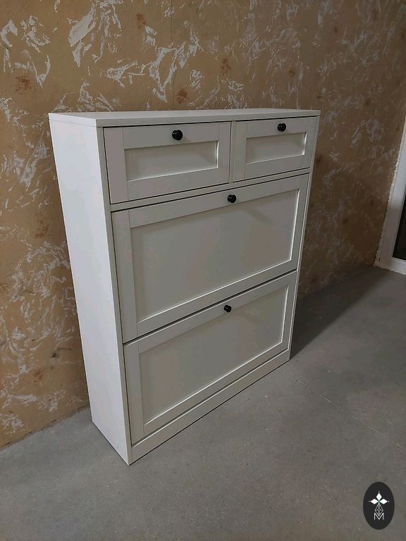5 līmeņu mantu plaukts ar 4 durvīm. Plauktiem ir regulējams augstums.