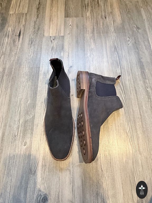 Верхняя часть выполнена из водонепроницаемой замши и ткани.