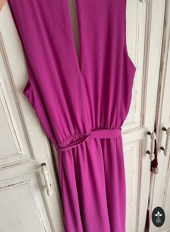 50-ųjų įkvėpta bordo šifono suknelė su viskozės pamušalu. Labai lengva ir erdvi suknelė. Nesiglamžo, užima mažai vietos. Puikiai tiks išleistuvių sezonui. Suknelė turi kišenes. Užtrauktukas šone. Krūtinės plotis 51cm. Suknelės ilgis 112 cm. Nuotraukoje esančio modelio ūgis 162cm.