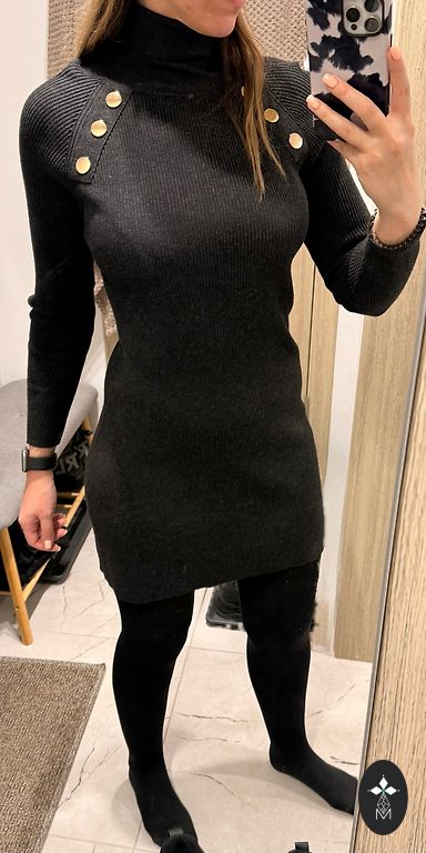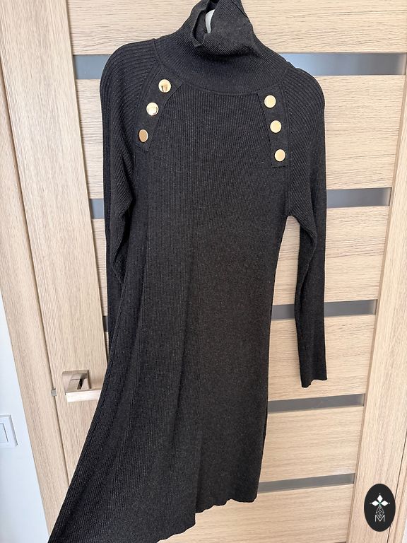 Almost unused asymmetrical dress that looks very nice on the body, with sleeves whose width is adjustable with zippers