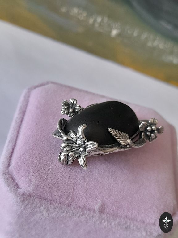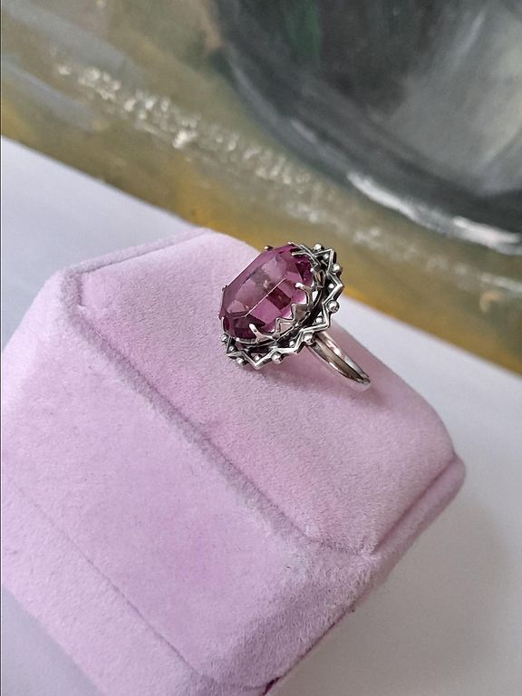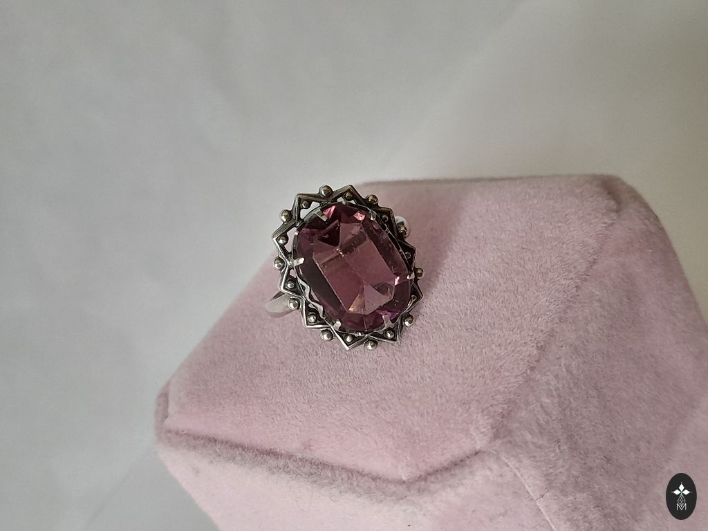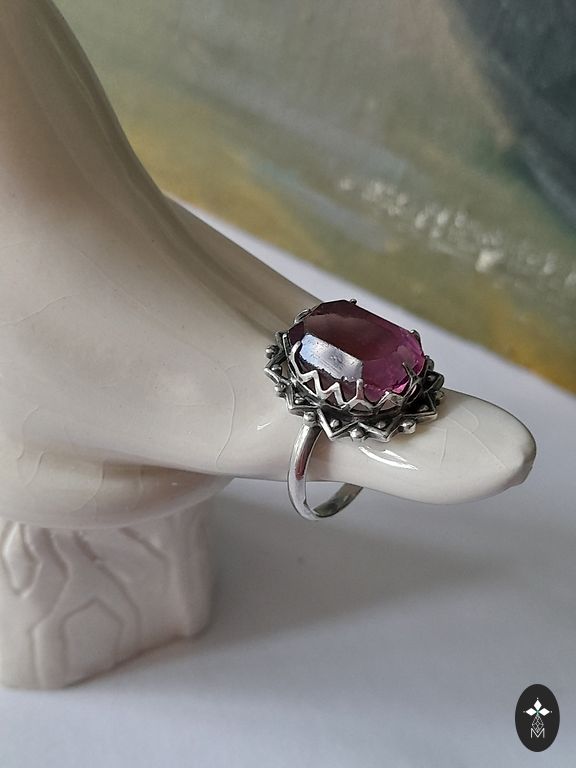 Silver ring with garnet. 925.