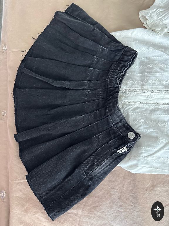 Юбка из экокожи с регулируемой резинкой (длина 24 см) и свитер.